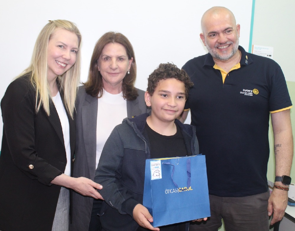 Ao todo, oito estudantes receberam óculos de grau completos, doados pelas Óticas Carol, após avaliação realizada pelos oftalmologistas voluntários do projeto do Rotary