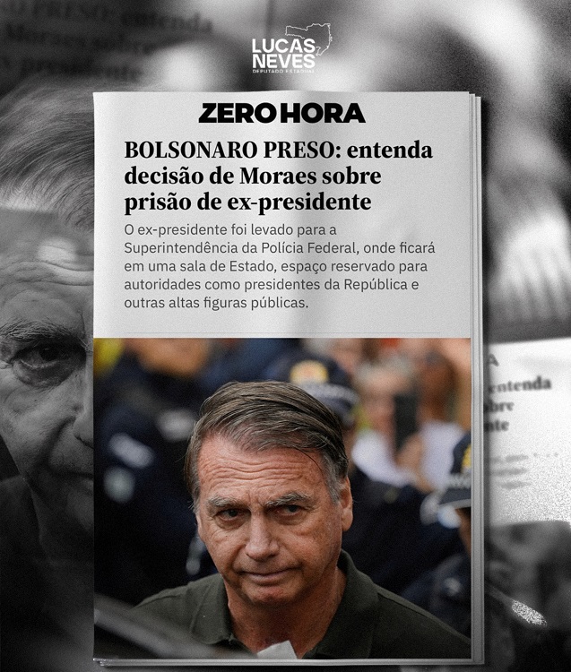 O parlamentar lageano foi às redes se posicionar sobre a prisão de Jair Bolsonaro apontando que “esse episódio da nossa história levanta muitas dúvidas e merece ser analisada com serenidade, mas também com coragem”. Lucas Neves acredita que “existe um movimento evidente para retirá-lo de qualquer disputa, de silencia-lo politicamente”. Para o parlamentar “as restrições impostas nos últimos meses e, agora, a prisão, soam estranhas, frágeis e difíceis de explicar de forma convincente”.