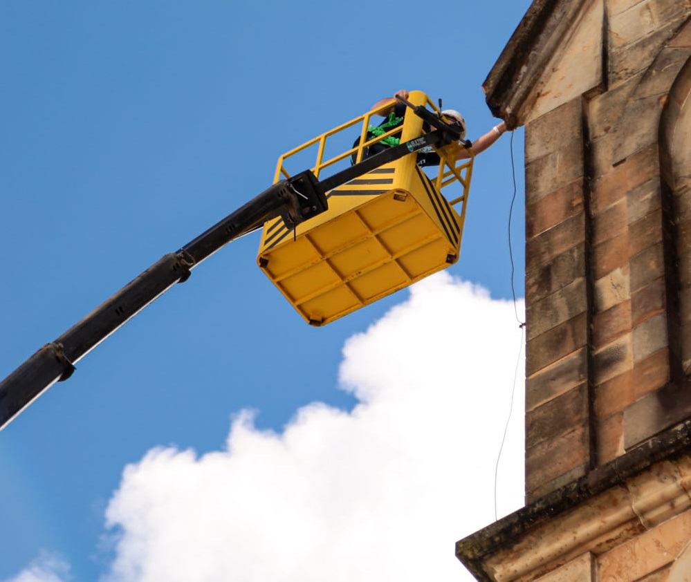 Nesta terça-feira, 16, equipe técnica composta por engenheiros utilizou caminhão com plataforma elevatória (tipo cesto aéreo), para visualização e perícia sobre a área para avaliação do local que foi liberado após o procedimento.
