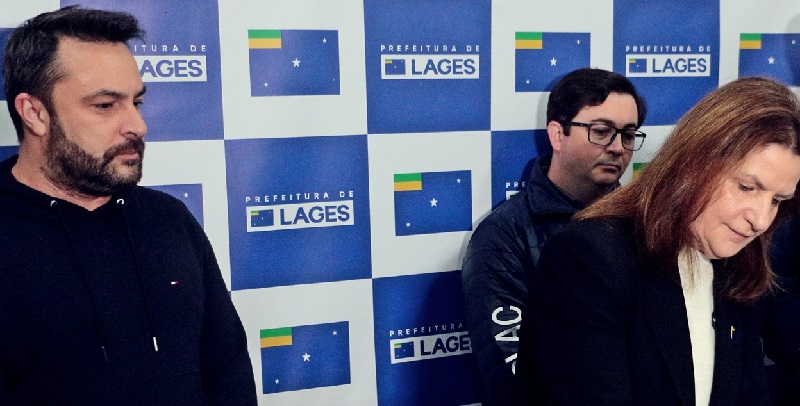 Thiago Bettú (entre os vereadores Batalha e José Osni) que comandará o Lages Mais Escrituras no registro com Samuel Ramos e Malek Dabbous