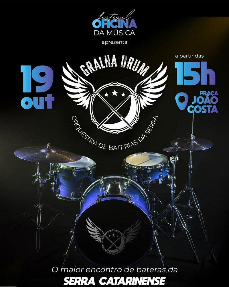Dessa vez não tem Serpente do Tanque que não se desacomode com o que está por vir. Até lembramos do advogado Marcelo Menegotto ao receber o conteúdo, ele que já assistiu e também integrou esse tipo de espetáculo manuseando sua bateria dos tempos idos. Teremos, portanto, na tarde de 19 de outubro um espetáculo inédito e vibrante. O Gralha Drum, Orquestra de Baterias 2025, reunirá músicos de toda a Serra Catarinense em uma apresentação coletiva no Calçadão. A montagem de instrumentos inicia às 11h, transformando a principal praça de Lages em um verdadeiro palco a céu aberto.