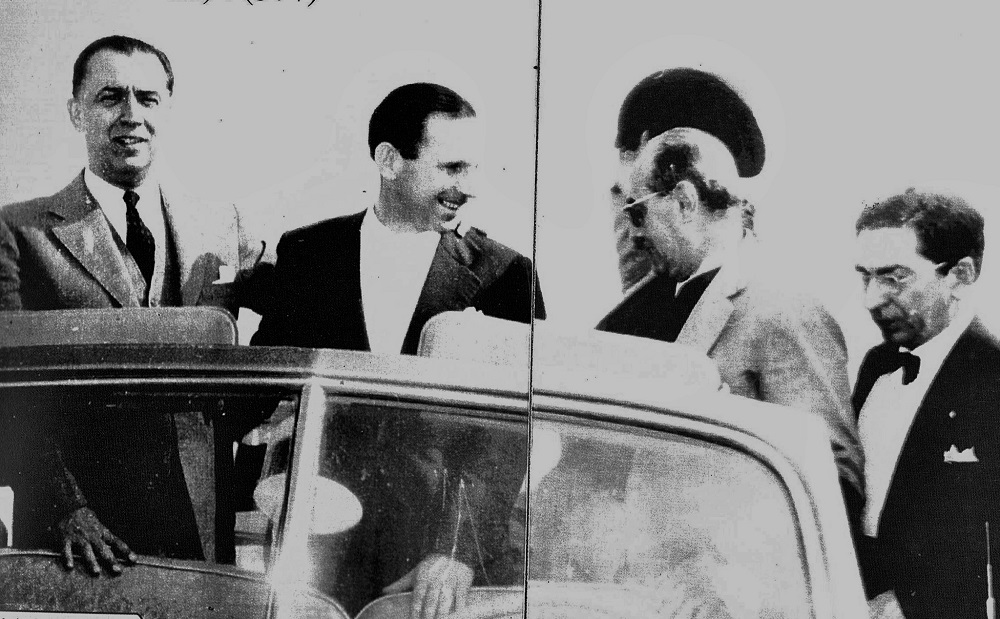Esta foto foi tirada em 1955 durante a campanha presidencial de Juscelino Kubitschek em visita a Lages ao lado do prefeito em exercício Euclides Granzotto e os senhores Francisco Galotti e Vidal Ramos Junior.