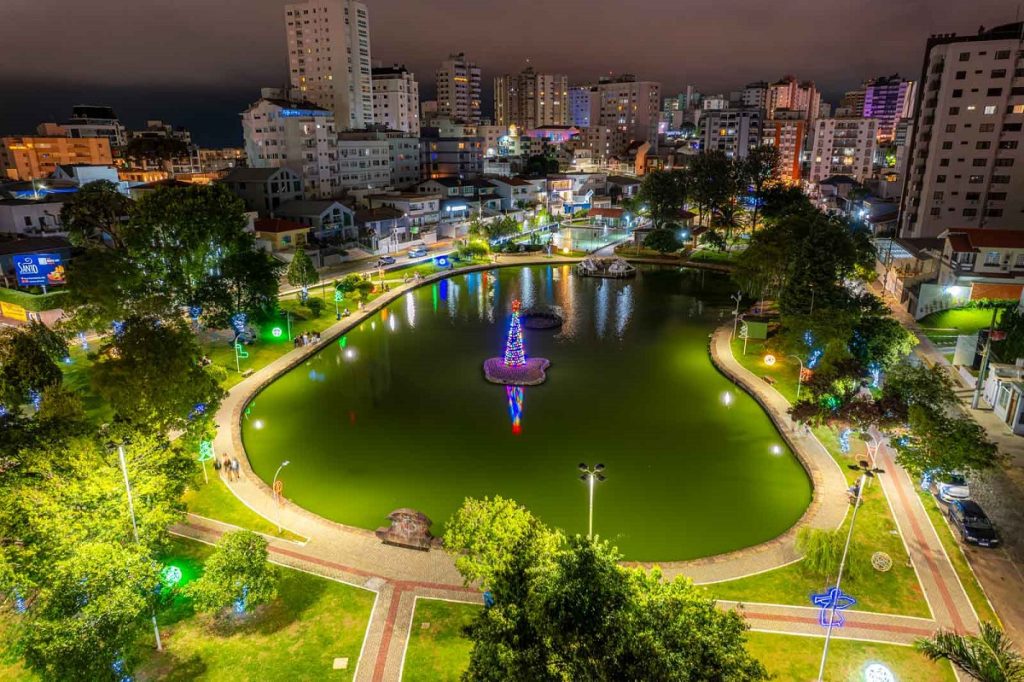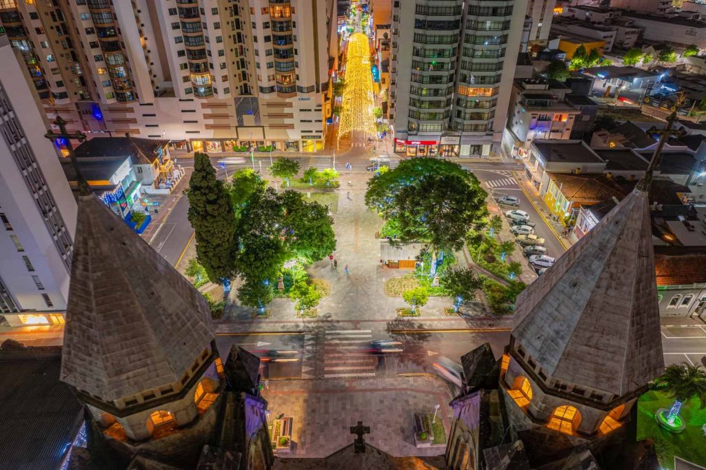 A própria praça do Terminal Urbano (Vidal Ramos Sênior) ganhou esse contraste bem iluminado durante este mês de dezembro