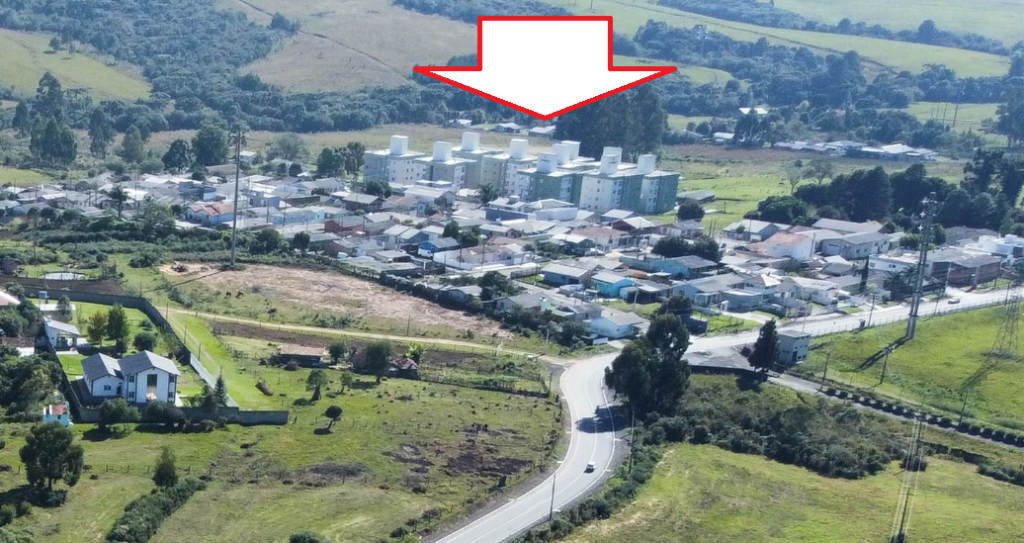 Pegamos do Alan Borges que fez o registro com drone da obra no trevo da Abecelesc para avistar o conjunto de prédios construídos no bairro Jardim Celina, exemplificando que há oferta de moradia em toda parte de Lages.