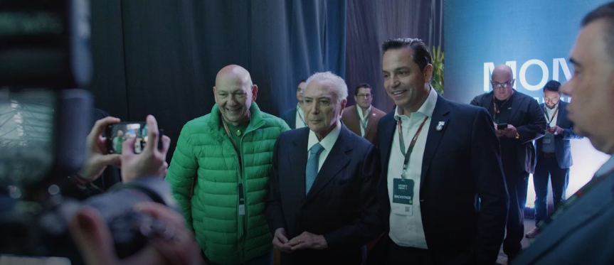 Juliano Custódio, CEO da EQI Investimentos (direita) que, inclusive dividiu o palco da Money Week com o chairman do BTG Pactual, André Esteves, aparece acima com o empresário Luciano Hang, recepcionando Michel Temer, o ex-presidente brasileiro e um dos melhores doutrinadores constitucionalistas que palestrou no evento.
