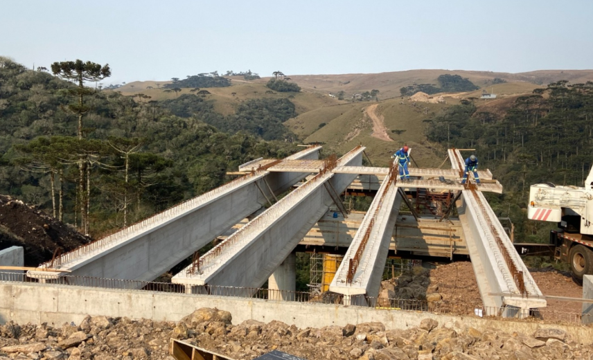 Aqui uma das etapas da obra da ponte sobre o Rio das Antas entre São José dos Ausentes (RS) e Timbé do Sul (SC)