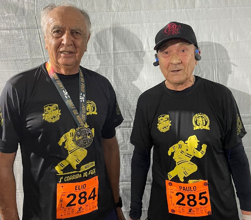 Atualmente com 78 anos, no grupo dos 229 homens participantes da Corrida do Fogo – que comemorou o aniversário do Corpo de Bombeiros – lá estava Elio dos Santos concluindo o percurso. Mas em termos de exemplo de vida longa e no trecho, ele não estava sozinho. A outra referência nas pernadas pelas vias da paróquia, o advogado Paulo Sagaz, também completou os 5 km. Sagaz que por sinal, já passou alguns meses da marca dos 80 anos.