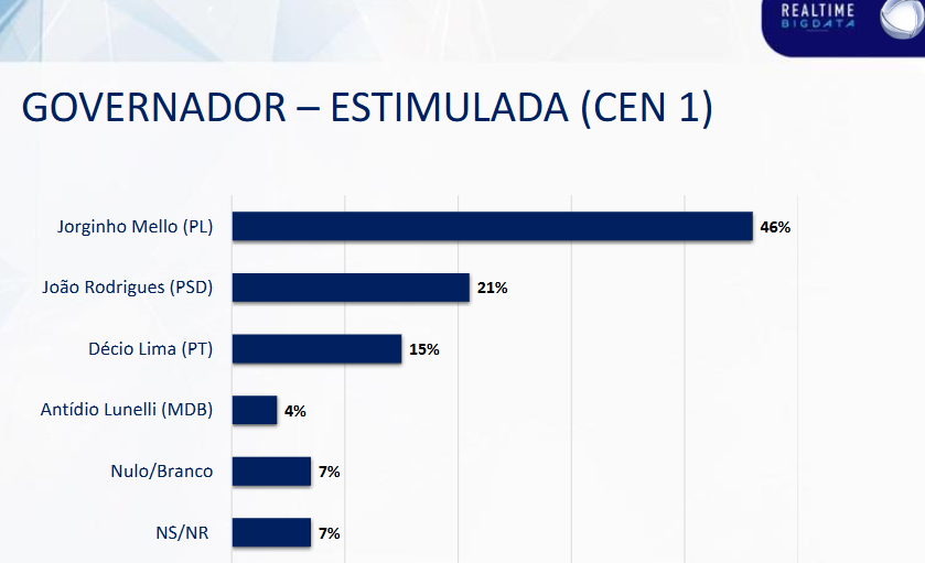 João Rodrigues e Jorginho Mello transparecem na pesquisa Real Time Big Data que, ambos, devem mesmo polarizar a disputa no Estado, exceto se surgir algum fato novo ao longo desses 13 meses que separam os catarinenses das urnas.