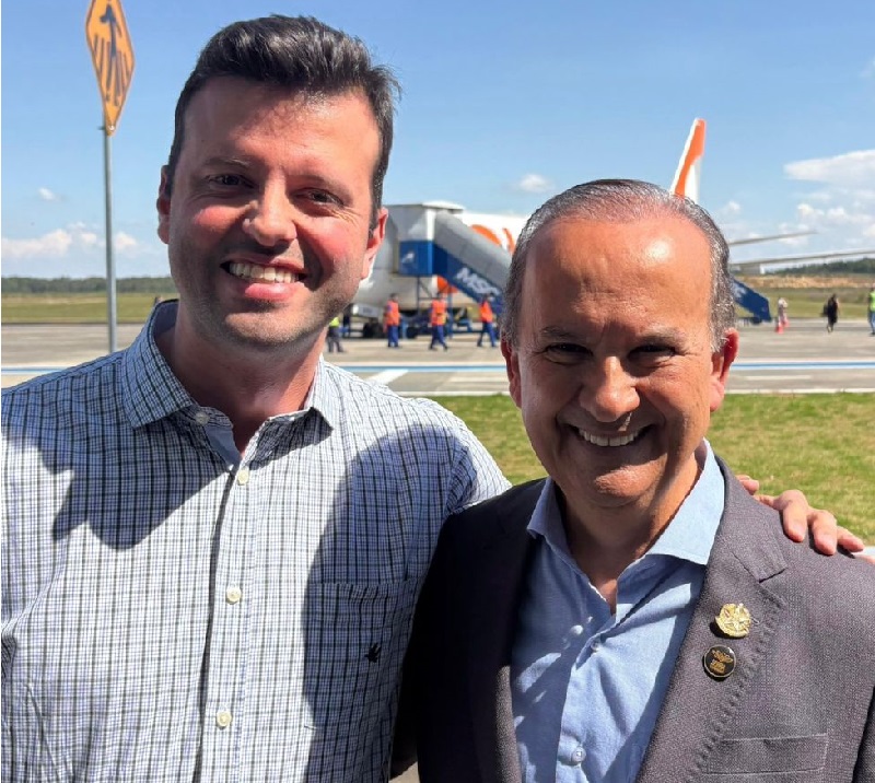 Prefeito Leandro Correa quando da inauguração do voo da Gol em Correia Pinto com o governador Jorginho e a tarefa de reforçar o quadro de pessoal na prefeitura que ele administra em Urubici