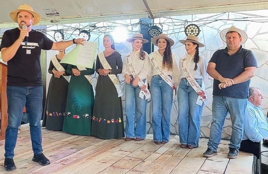 O deputado Lucas Neves (Republicanos) subiu em um dos quase 100 tratores que fizeram a marcha da celebração da colheita, no Festicol, a festa que acontece na metade de abril na localidade de Luizinho, em São Joaquim. O parlamentar praticou o gesto para chegar até a localidade e, durante a fala, anunciar a liberação de R$ 1.900.000,00. O valor será aportado na aquisição de 43 equipamentos que formarão uma rede de proteção anti-granizo em diversos locais de produção de maçã.