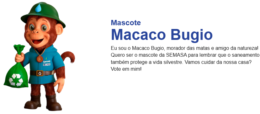 Para fazer uma prévia da campanha, o portal da Semasa (que você acessa aqui) colocou os bichinhos emparelhados já com as vestimentas para a lida preservacionista. Quem acesso pode escolher um dos candidatos para ser o mascote.