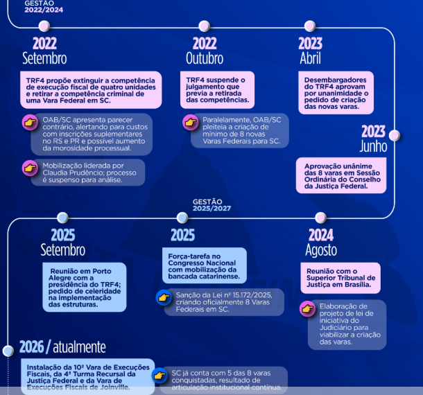 Linha do tempo da atuação da OAB até a viabilização das novas Varas Federais em SC