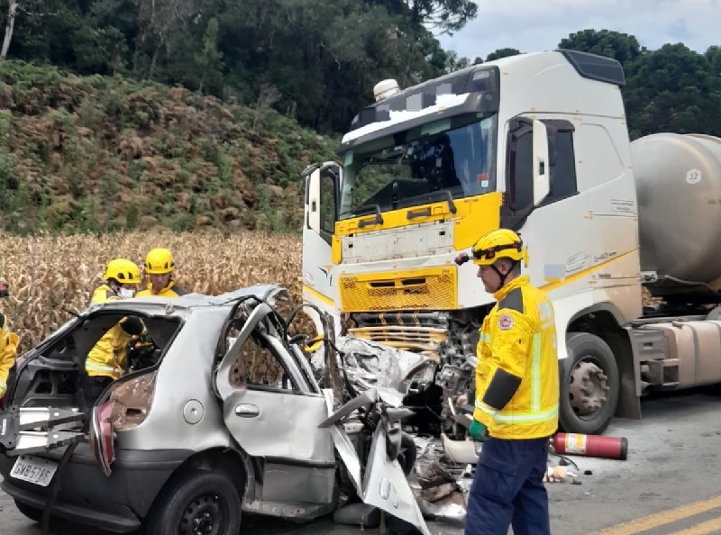 Pelas circunstâncias do registro é provável que o condutor tenha perdido o controle da direção, invadido a faixa contrária da BR-470 e colidido frontalmente com a carreta Bitrem oriunda de Curitiba (PR) que transportava mais de 50.000 litros de biodiesel. O acidente foi nas proximidades da ponte do Rio Marombas, já em território de Brunópolis, após Curitibanos. Os quatro ocupantes foram encontrados sem vida e presos às ferragens. A PRF tomou as providências de protocolo.