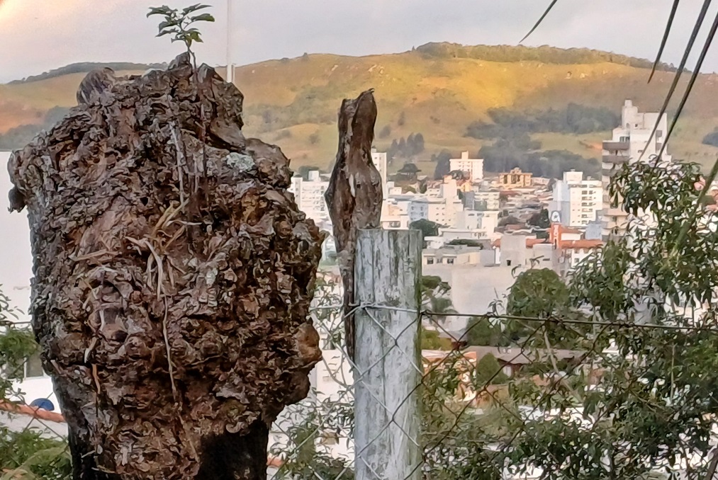 É provável que a maioria das pessoas nunca se deparou com a ave que é envolta a lendas e misticismo. O fato de ter hábitos noturnos e de se camuflar facilmente, parecendo um pedaço de madeira, tudo isso torna o Urutau uma espécie bastante discreta aos olhos humanos. Mas neste começo de abril, no final da tarde da segunda-feira, a engenheira agrônoma Marlise Nara Ciotta – ela que é Gerente da Estação Experimental da Epagri em Lages -, conseguiu distinguir a ave que pousou em um dos palanques com a cidade de Lages ao fundo.